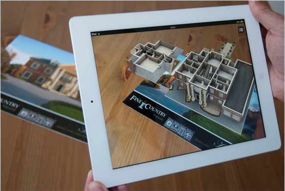 AR樓書是一種基于AR增強(qiáng)現(xiàn)實(shí)技術(shù)的創(chuàng)新地產(chǎn)多媒體展示營銷產(chǎn)品,可以嵌入根據(jù)客戶需求定制的APP中,讓平板、手機(jī)等終端變成移動售樓部,同時(shí)有效吸引客戶,捕獲客戶信息,實(shí)現(xiàn)精準(zhǔn)營銷。在傳統(tǒng)的平面戶型手冊上,客戶難以感知未來室內(nèi)空間,模型的質(zhì)感和細(xì)膩度也差強(qiáng)人意。而AR技術(shù)所呈現(xiàn)的三維立體戶型,更加詳盡的將樓盤的產(chǎn)品本質(zhì)和興奮點(diǎn)傳遞給客戶,給客戶以信賴感和視覺新奇感。同時(shí)AR樓書中還結(jié)合小游戲,有效利用移動互聯(lián)網(wǎng)進(jìn)行信息擴(kuò)散和客戶信息捕捉,形成更具針對性和有效的營銷。