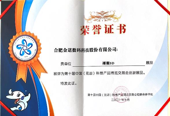 歷經(jīng)三天展覽與組委會(huì)評(píng)選,金諾科技CAVE沉浸式折幕-裸眼3D創(chuàng)意秀和“大國(guó)重器”全息幻象兩大展品脫穎而出,被評(píng)為第十屆中國(guó)(蕪湖)科普產(chǎn)品博覽交易會(huì)創(chuàng)新展品,金諾科技榮耀加持,載譽(yù)而歸。