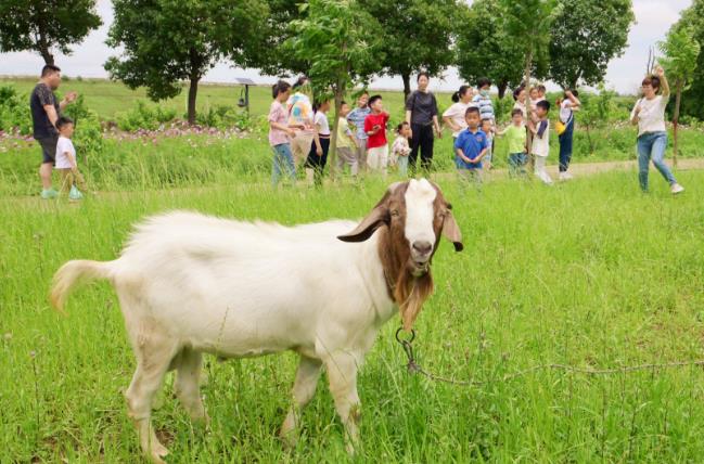 ·許井生態(tài)農(nóng)莊內(nèi),花草萋萋,風(fēng)光秀麗,集聚山羊、白鵝、雞鴨等農(nóng)家小動(dòng)物,小朋友們滿懷好奇,細(xì)心觀察,與各類小動(dòng)物來(lái)一次親密接觸,增長(zhǎng)了對(duì)動(dòng)物與自然的理解和認(rèn)知。