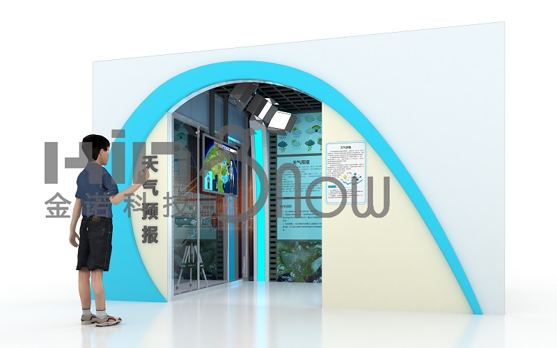 1、觀眾進(jìn)入空間內(nèi)部,根據(jù)顯示屏字幕的提示進(jìn)行虛擬預(yù)報(bào)體驗(yàn)。