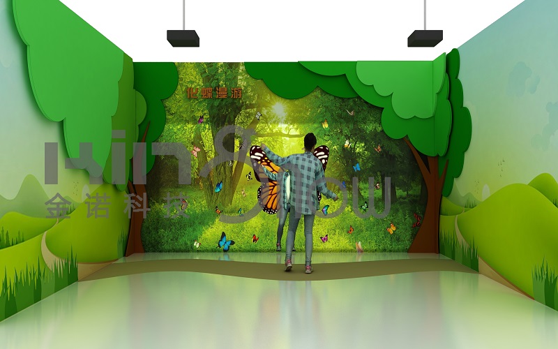初始狀態(tài),畫面顯示多種蝴蝶翩翩起舞畫面,觀眾做出動作選擇不同的蝴蝶進入場景體驗。