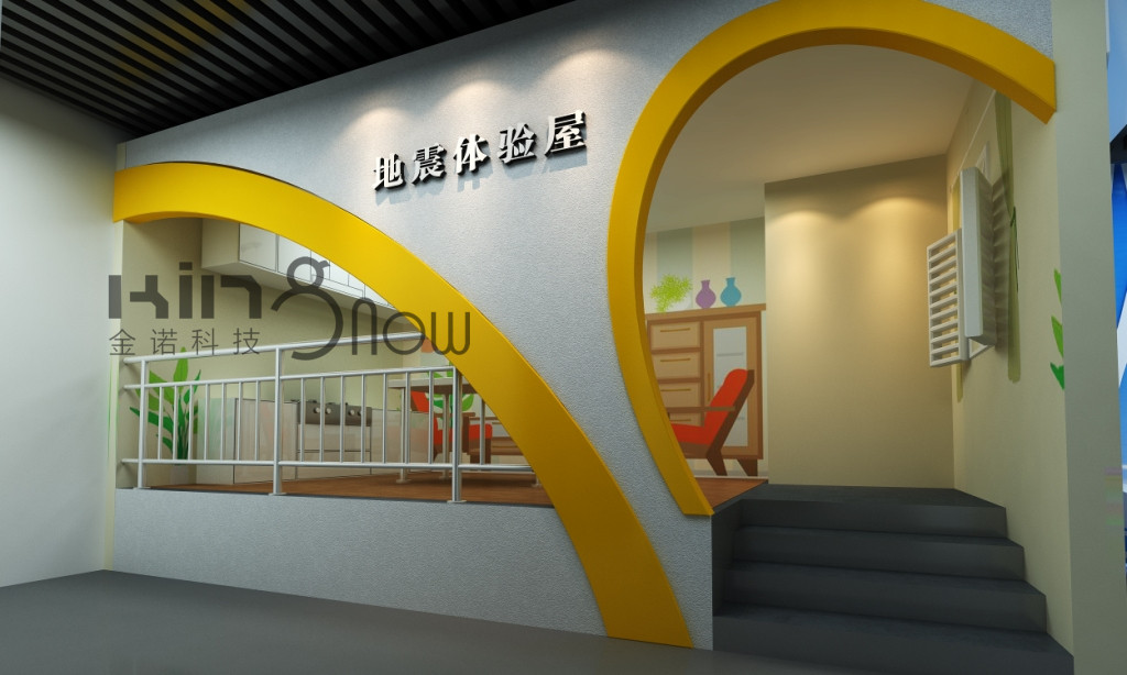 屋頂和墻壁由鋼結構和高密度板材等材質混合制成。 當地震發(fā)生時,房頂上上吊的燈來回晃動,電燈閃爍,電視畫面顯示地震的劇烈晃動的場景,此時屋內燈光閃爍,房屋劇烈震動,地震級別由4級到達 8 級,體驗者開始安排躲藏。通過地震體驗屋的模擬地震體驗,使體驗人員在地震來臨時的真實感覺,以及如何開展自救和互救,從而提高體驗者的防震避災的能力。