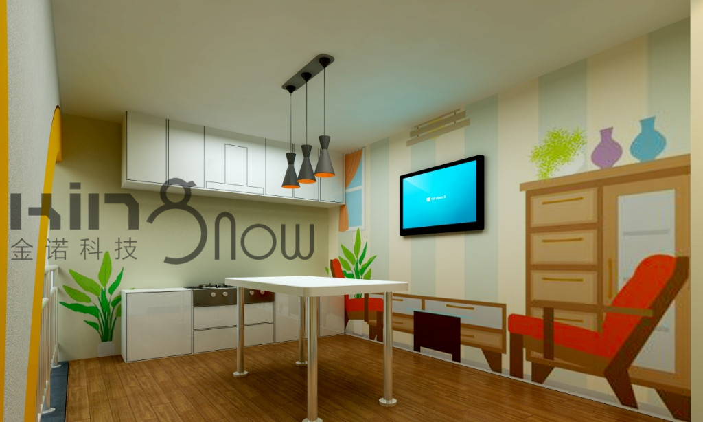 地震體驗屋以家庭中環(huán)境為背景,包括電燈、餐桌以及其他雜物等。整個房間根據尺寸不同,可容納4-8位人同時參與體驗。該系統(tǒng)即集合了傳統(tǒng)機械液壓系統(tǒng),也融合新穎的互動體驗、多媒體、特效實景系統(tǒng)。主要系統(tǒng)包括:機械系統(tǒng)、液壓系統(tǒng)、家居系統(tǒng)、控制系統(tǒng)、多媒體系統(tǒng)、特效系統(tǒng)、監(jiān)控系統(tǒng)等。