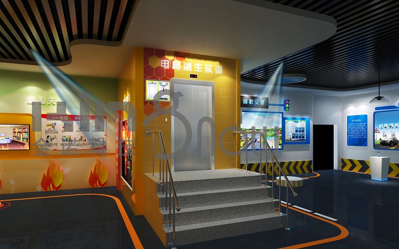 觀眾在工作人員的指導(dǎo)下進(jìn)入電梯,工作人員在后臺啟動系統(tǒng),在電梯內(nèi)按下樓層按鈕,電梯內(nèi)電子數(shù)字屏虛擬真實電梯的樓層數(shù),營造電梯上升的感覺,帶給觀眾真實的乘坐電梯體驗。