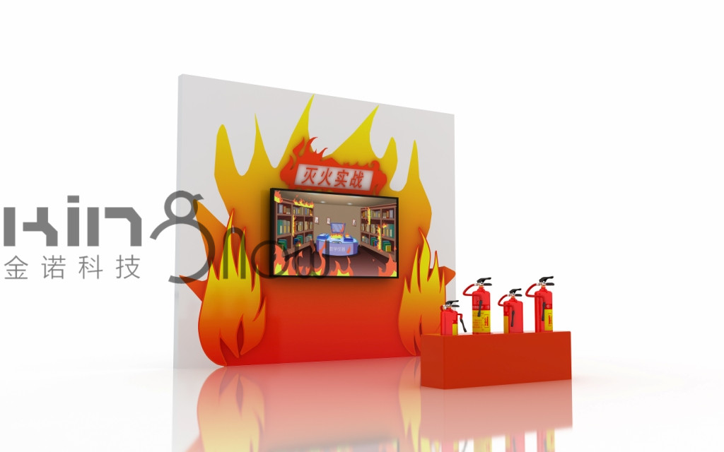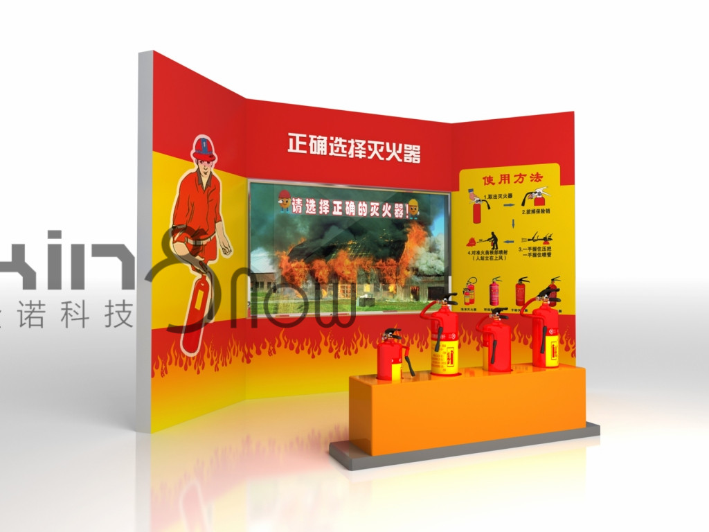 本展項(xiàng)滅火系統(tǒng)基于無(wú)線傳感與通信技術(shù),使用仿真滅火器對(duì)前方投影中的虛擬場(chǎng)景進(jìn)行滅火操作仿真,從而實(shí)現(xiàn)滅火訓(xùn)練功能。虛擬滅火體驗(yàn)系統(tǒng),是基于三維圖像技術(shù)開(kāi)發(fā)的第一人稱仿真滅火游戲,主要用于教學(xué)并體驗(yàn)滅火器的使用方式。 虛擬滅火體驗(yàn)系統(tǒng)畫(huà)面中包含多個(gè)基本場(chǎng)景,針對(duì)各場(chǎng)景的特點(diǎn),分別設(shè)置了油鍋、電器、易燃物等不同類型的火災(zāi)模擬現(xiàn)場(chǎng),同時(shí)提供干粉、二氧化碳、泡沫三種滅火器進(jìn)行選擇,選擇過(guò)程中進(jìn)行滅火器的選擇與使用指導(dǎo)。系統(tǒng)對(duì)于火災(zāi)與滅火器的類型、滅火器的使用時(shí)間、起火點(diǎn)的判定等數(shù)據(jù)進(jìn)行了完全仿真化處理,與現(xiàn)實(shí)中的情況基本一致。用戶通過(guò)模擬滅火體驗(yàn)系統(tǒng)進(jìn)行實(shí)際操作后,可以學(xué)會(huì)并掌握滅火器的正確選擇與使用方式。
