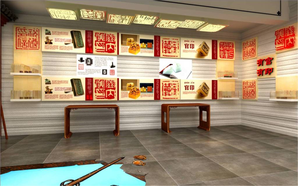 展項在傳統(tǒng)的實物官印展示之余,分為三個具體展示版塊:秦“傳國璽”的真?zhèn)巍⑸舷伦鸨芭c大小官印、時代越后與官印越大。在傳統(tǒng)的圖文介紹之余,采用最新的增強現(xiàn)實技術(shù)進行展示設(shè)計,在展示內(nèi)容選擇上我們選取某一個朝代的官印進行全方位展示,即展示皇帝玉璽到不同等級官員大小的官印類別,讓觀眾系統(tǒng)的了解官印大小的差別和含義。
